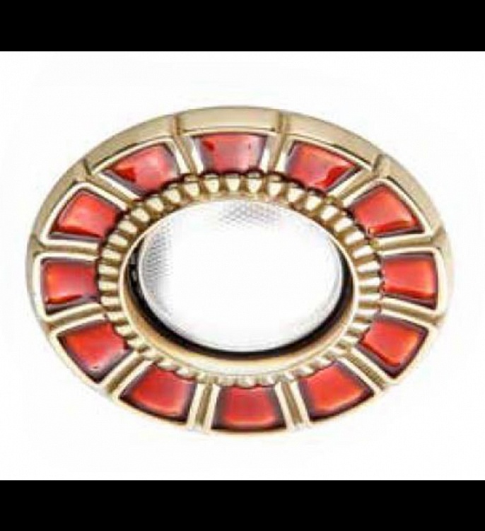 Встраиваемый точечный светильник из латуни, покрытый красной эмалью (лампочка не входит в комплект). Цвет металла LU - полированное золото.